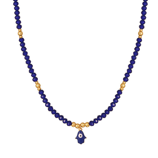 Collar Azul Cristales Mano Fátima Chapa de Oro 1G5
