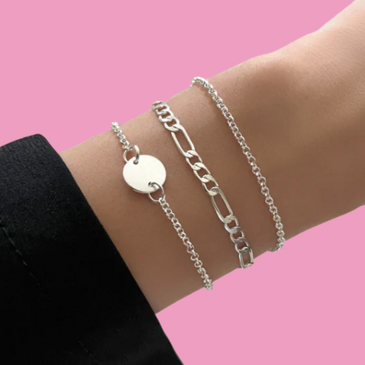 Pulseras Tres Pz Doradas Acero Inoxidable 1R5