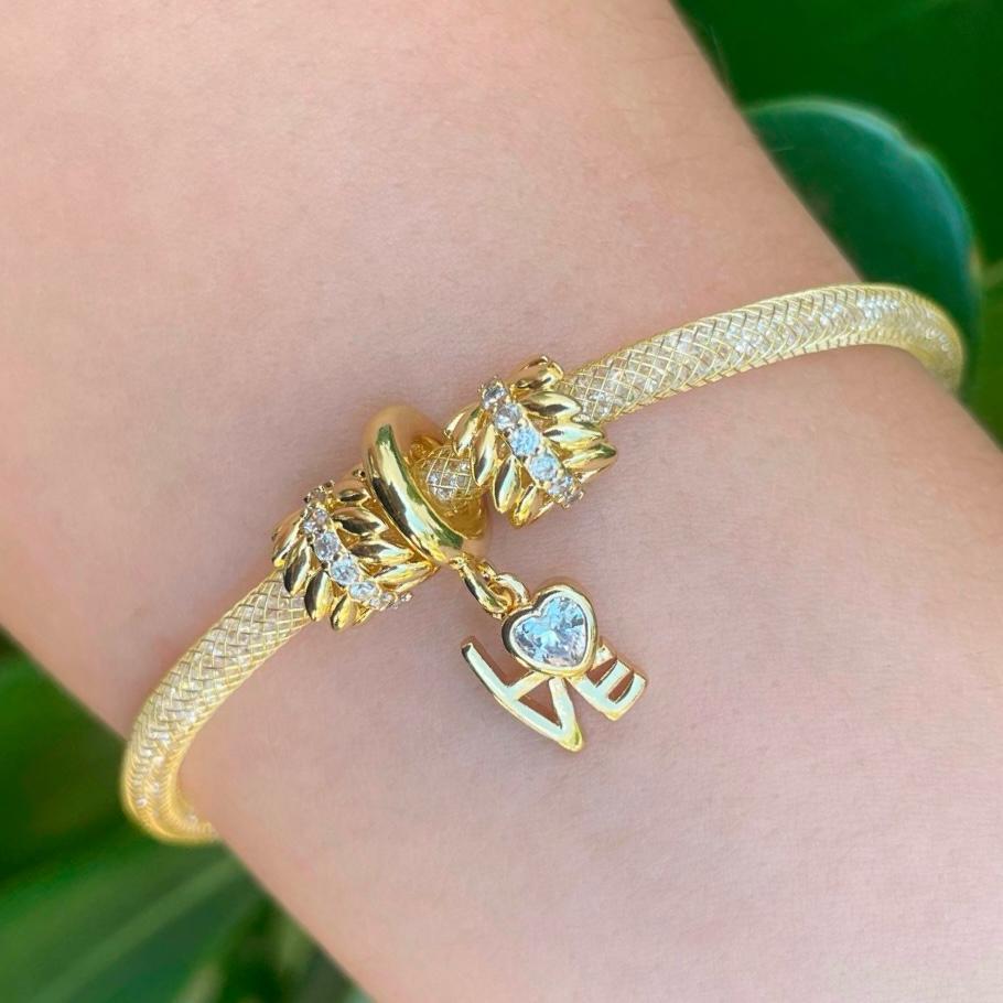 Pulsera Virgen Corazón Charms Chapa de Oro 1w2