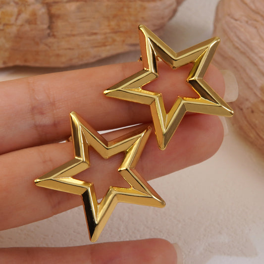 Aretes Dorados Estrella Acero Inoxidable 3A6