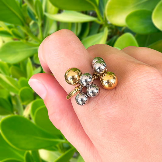 Anillo Oro-Plata Bolitas Acero Inoxidable 1L3