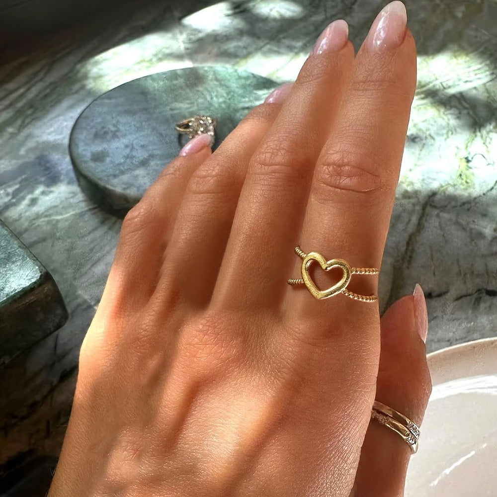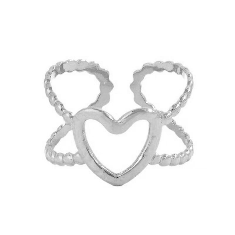Anillo Corazón Plateado Ajustable Acero Inoxidable 1U3