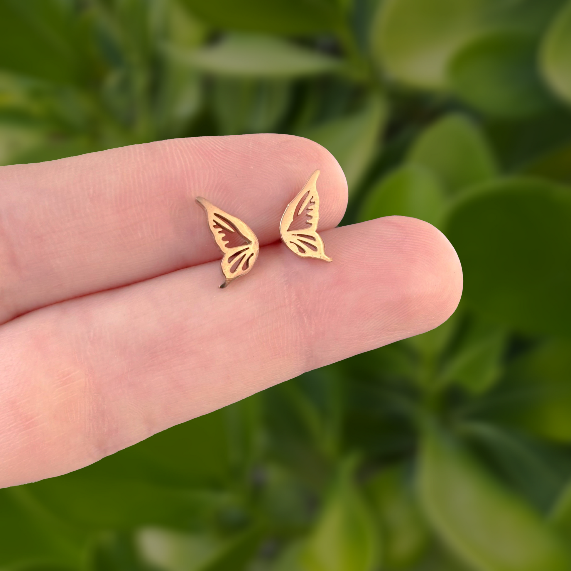Aretes Oro Rosa Mini Alas Acero Inoxidable 1D3