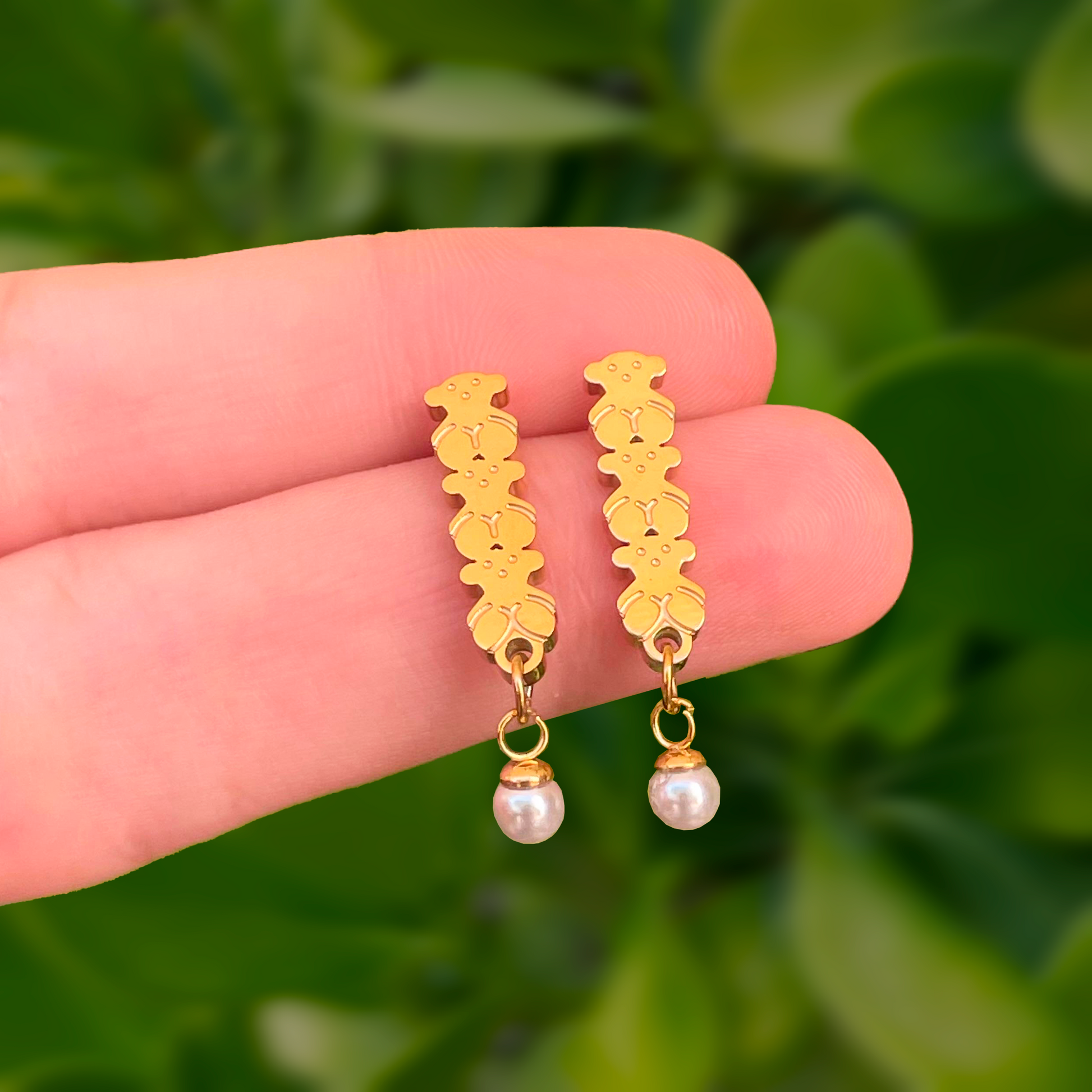 Aretes Oso Dorado con Perla Acero Inoxidable 1C5