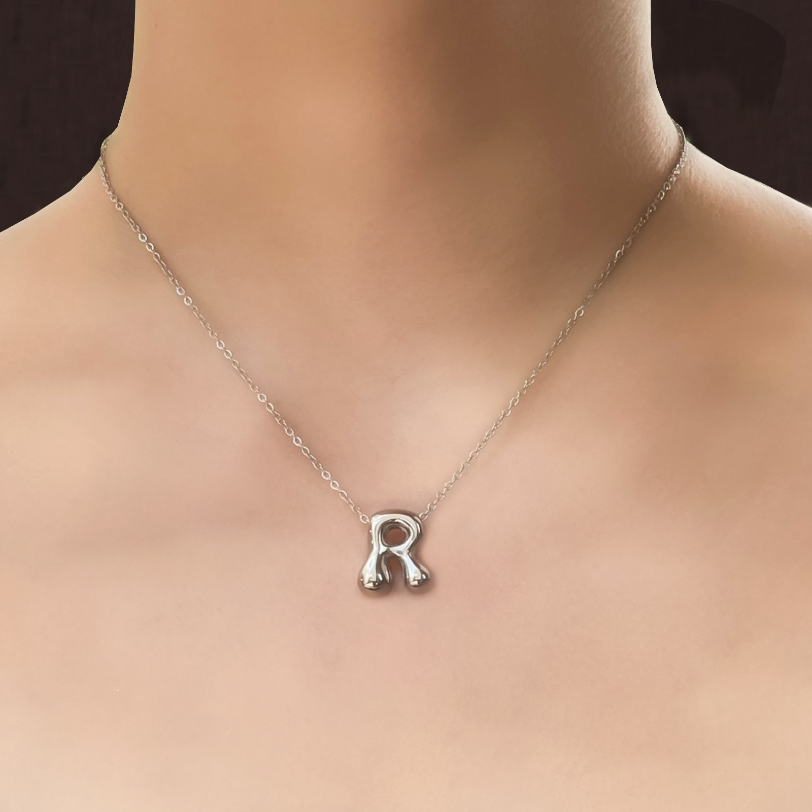 Collar Plateado Letra ¨R¨ Acero Inoxidable 1R1