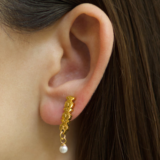 Aretes Oso Dorado con Perla Acero Inoxidable 1C5