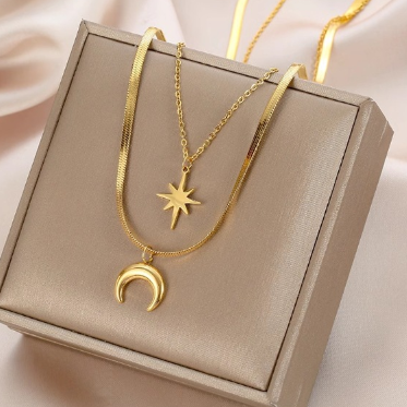 Collar Layer Estrella y Luna Dorado Acero Inoxidable 1M8