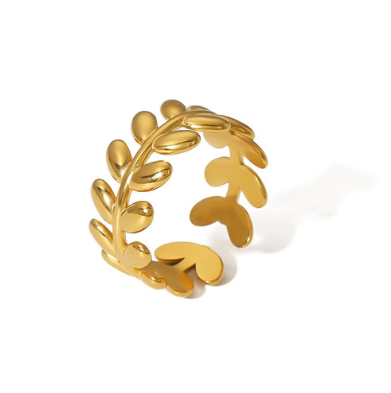 Anillo Dorado Laurel Ajustable Acero Inoxidable 2F5
