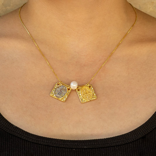 Collar Escapulario San Benito Oro-Plata Acero Inoxidable 2o5