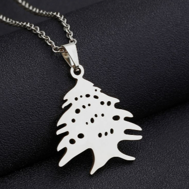 Collar Cedro de Líbano Plateado Acero Inoxidable 3G2