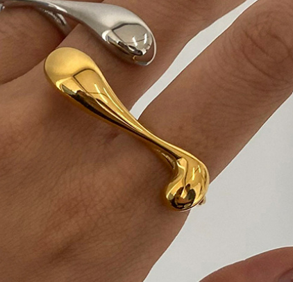 Anillo Gota Larga Dorada Acero Inoxidable R9
