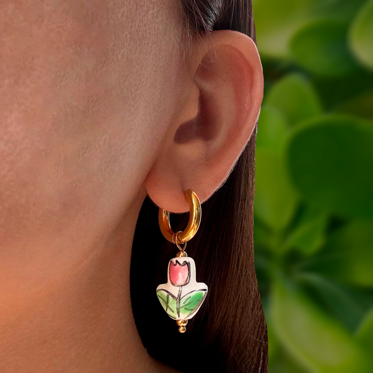 Aretes Flor Cerámica Acero Inoxidable 1W1