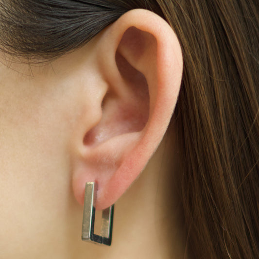Aretes Arracada Cuadro Plateado Acero Inoxidable 1J2