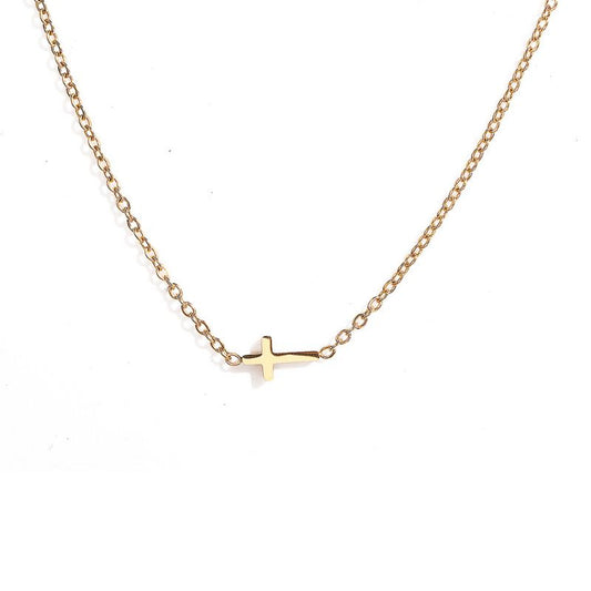 Collar Dorado Cruz Acostada Acero Inoxidable 3B3