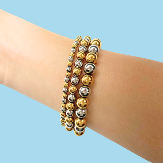 Pulsera Bolitas Oro-Plata Acero Inoxidable 2A1