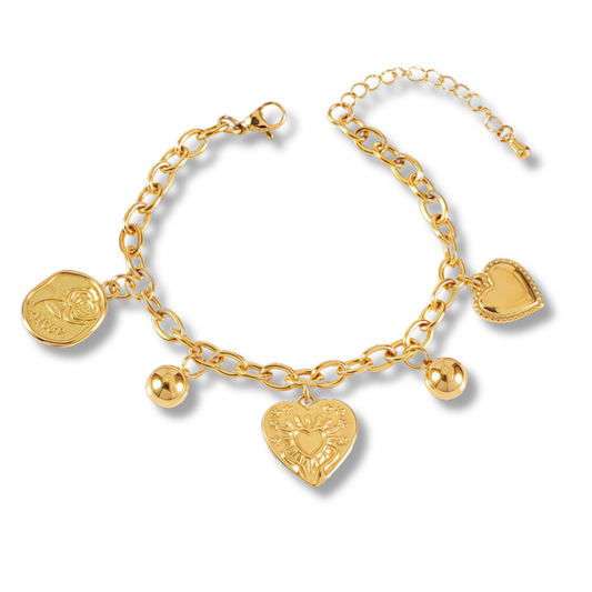 Pulsera Dorada Corazones Acero Inoxidable 1W2