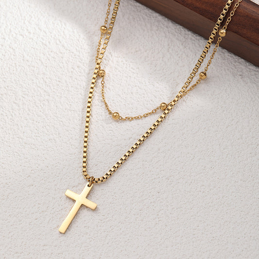 Collar Layer Dorado con Cruz Acero Inoxidable 3H2