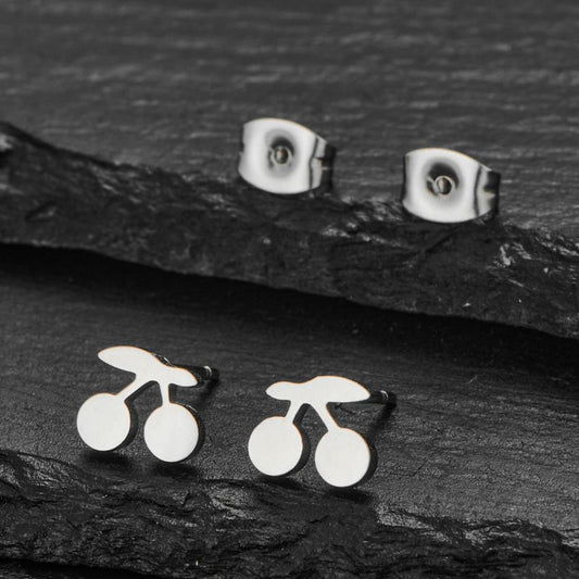 Aretes Mini Cerezas Plateadas Acero Inoxidable C673