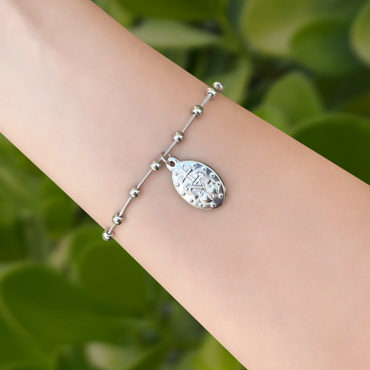 Pulsera Plateada Medalla Milagrosa Acero Inoxidable 1P3