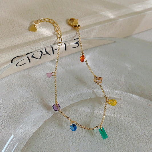 Tobillera Cristales de Colores Acero Inoxidable 1H1Precio habitual $ 55.00 MXNPrecio habitual Precio de oferta $ 55.00 MXNPrecio unitario / por