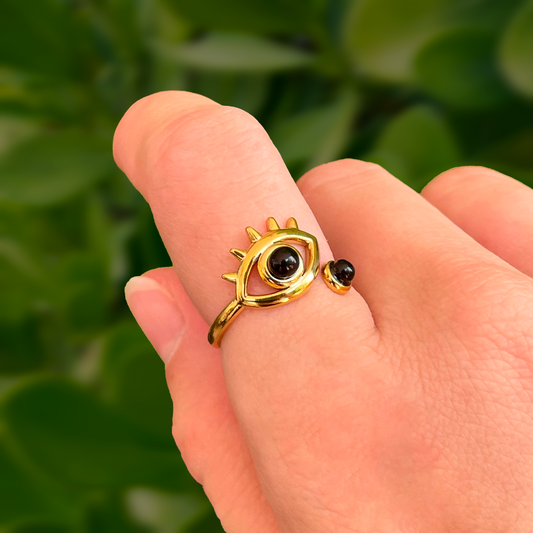 Anillo Dorado Ojo Negro Ajustable Acero Inoxidable R26Precio habitual $ 55.00 MXNPrecio habitual Precio de oferta $ 55.00 MXNPrecio unitario / por