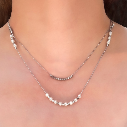 Collar Layer Plateado Perlitas Acero Inoxidable 2K8Precio habitual $ 115.00 MXNPrecio habitual Precio de oferta $ 115.00 MXNPrecio unitario / por
