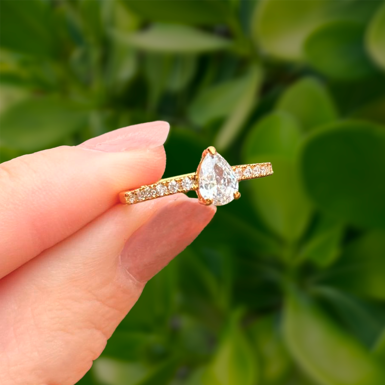 Anillo Dorado Gota y Zirconias Chapa de Oro Az172