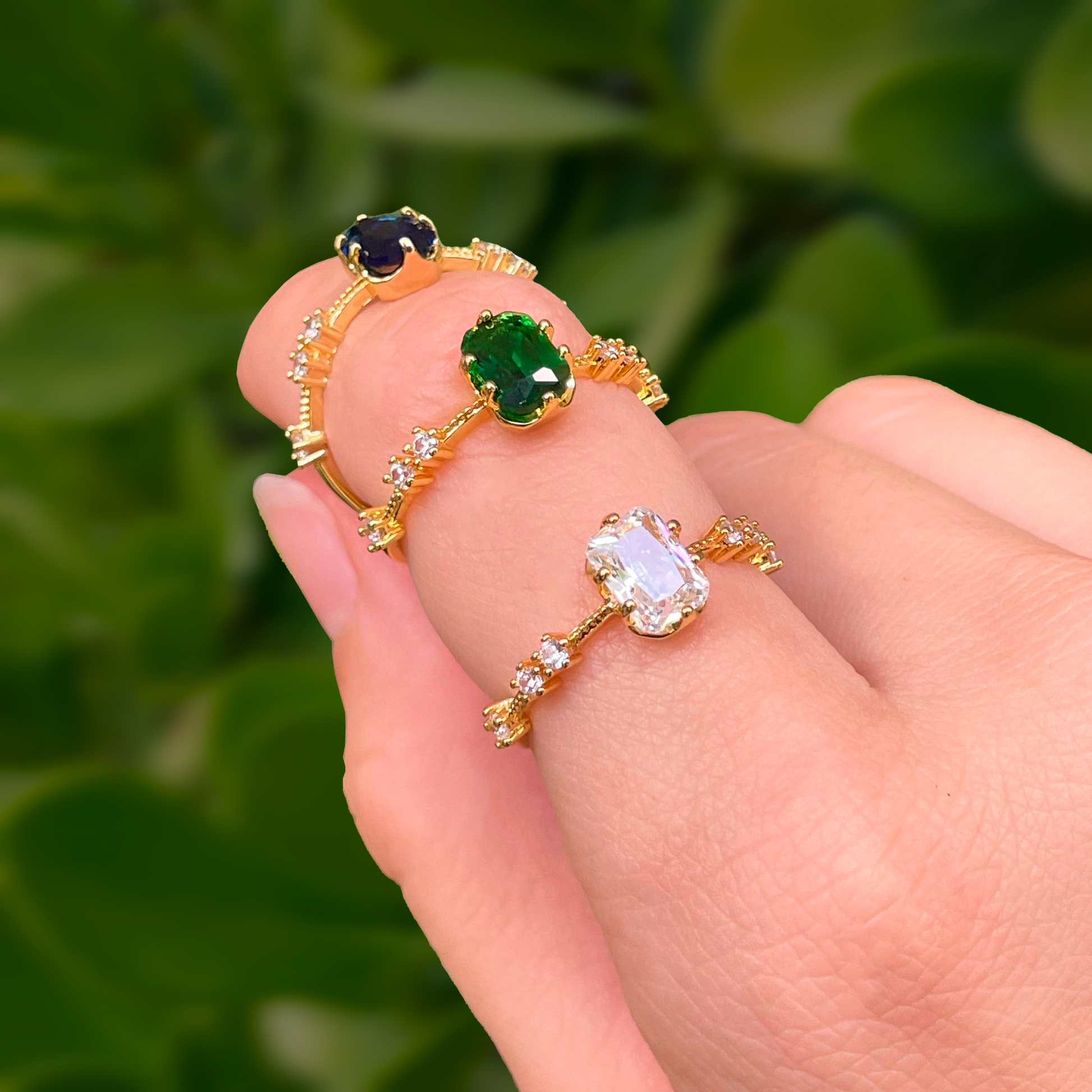 Anillo Zirconia Verde Chapa de Oro Ajustable C641