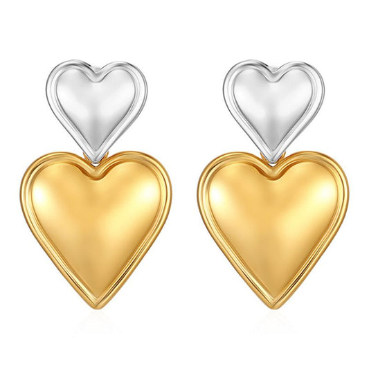 Aretes Corazones Oro-Plata Acero Inoxidable 1V5