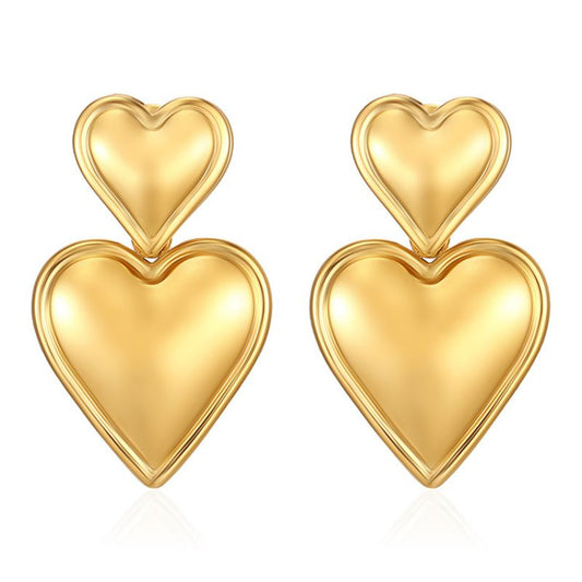 Aretes Corazones Dorados Acero Inoxidable 1M5