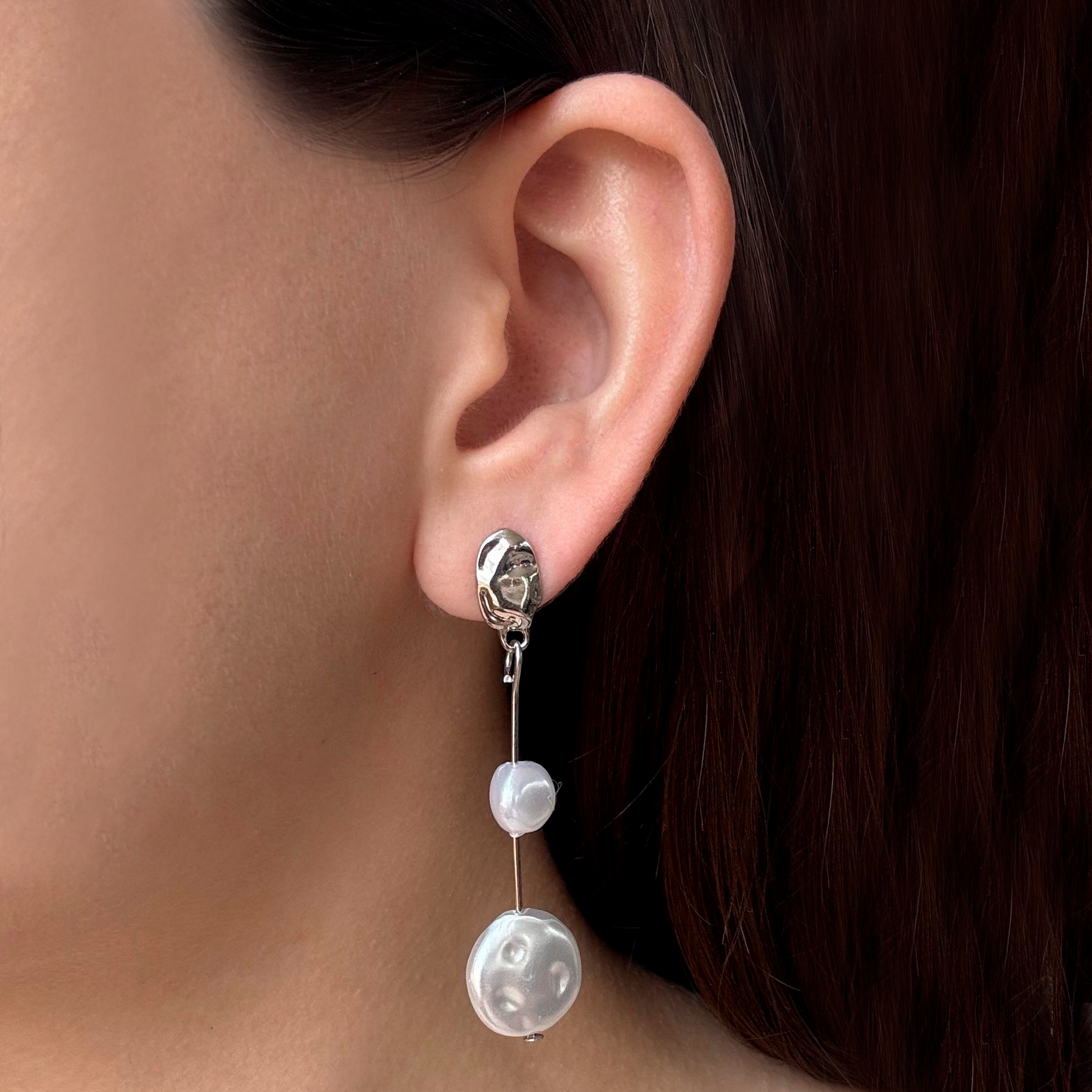 Aretes Plateados de Concha Irregular 3D3