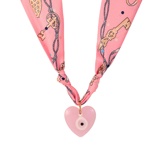 Collar de Cinta Estampada Corazón Rosa Acero Inox 2BB3
