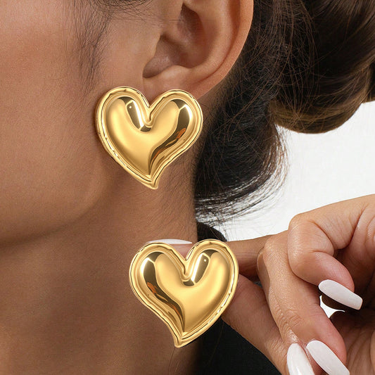 Aretes Dorados Gran Corazón Acero Inoxidable 1X7