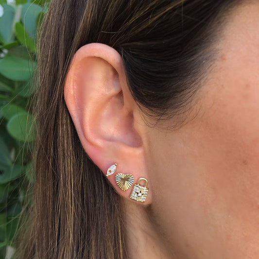 Aretes Corazon Llave Magenta Chapa de Oro AZ4
