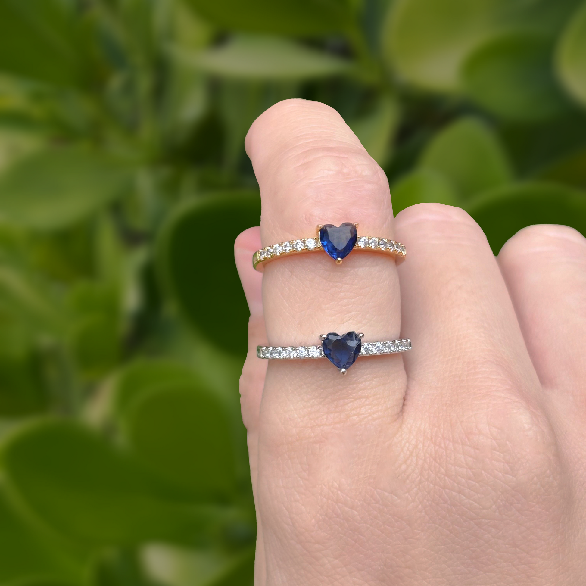 Anillo Corazón Zirconia Azul Ajustable Chapa de Oro
