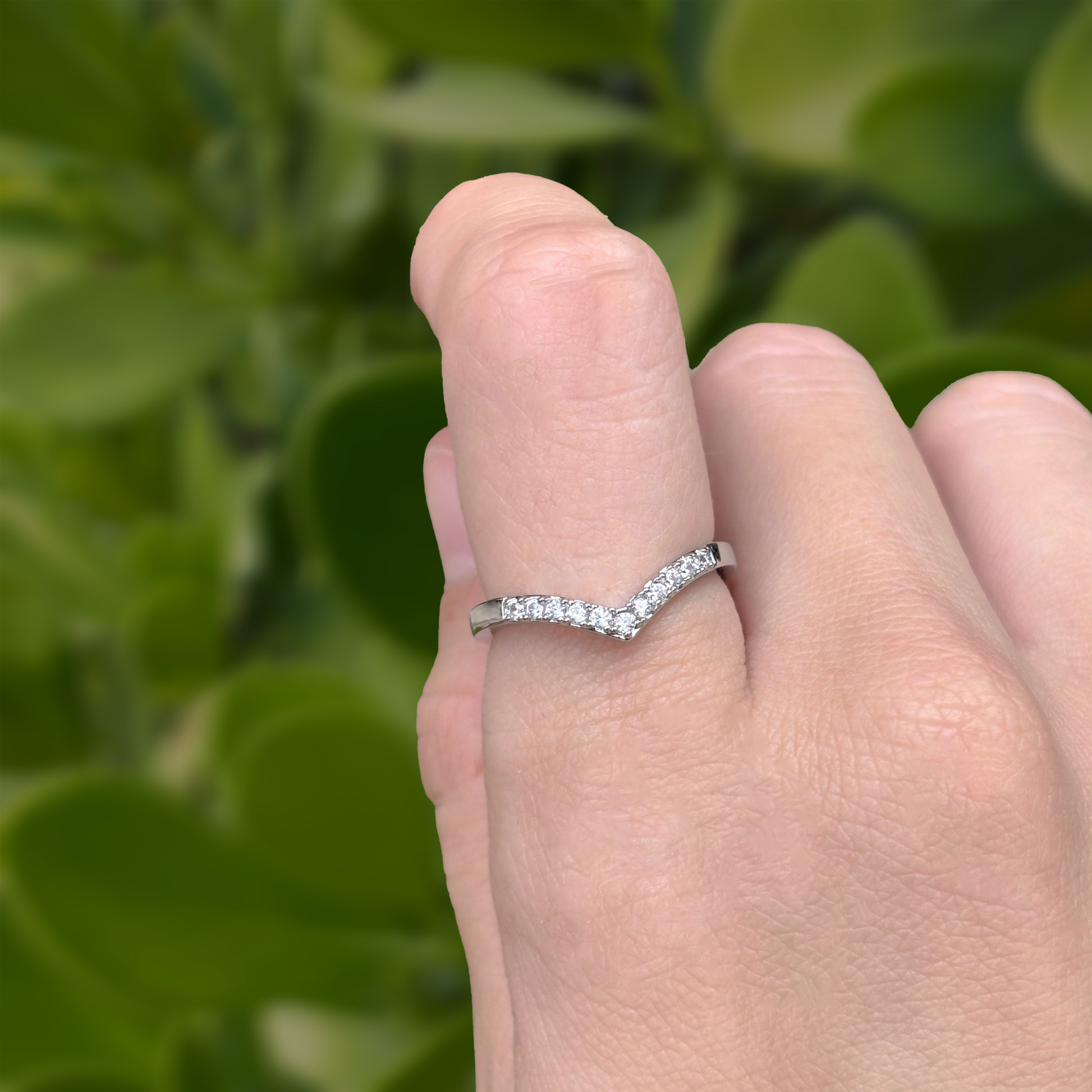 Anillo en V Zirconias Plateado Ajustable Chapa de Oro Az104