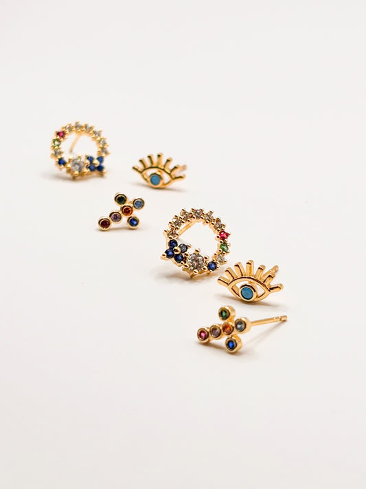 Aretes Ojo Azul Chapa de Oro 18K Az311