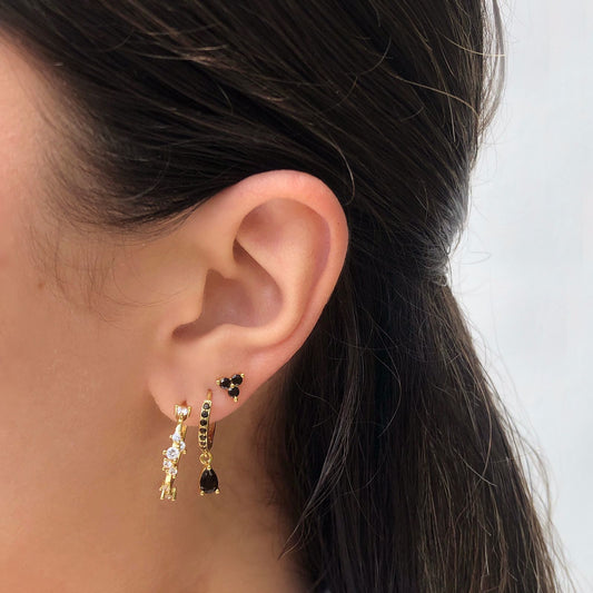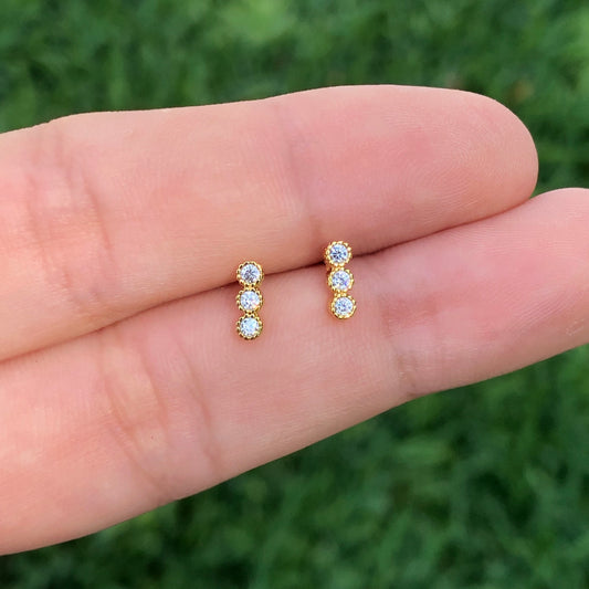 Aretes 3 Zirconias Chapa de Oro 14K Az217