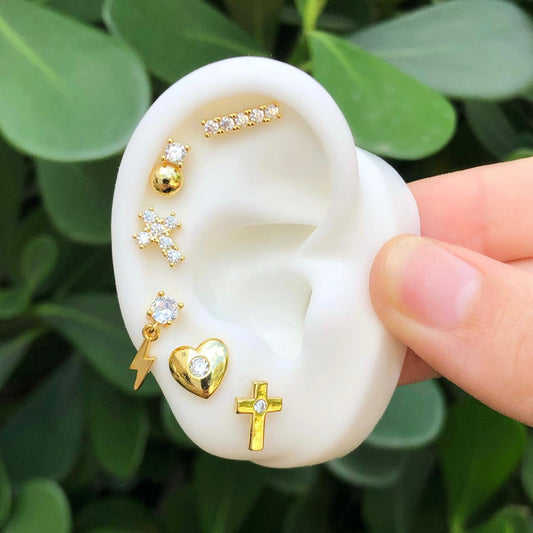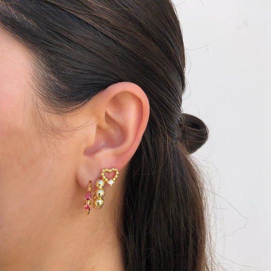 Aretes Corazón Plateado Chapa de Oro 4E23