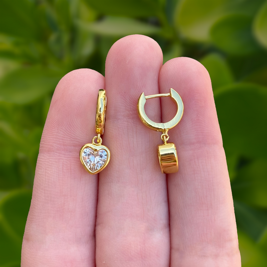 Aretes Arracada Dorada Corazón con Zirconias Chapa de Oro Az242