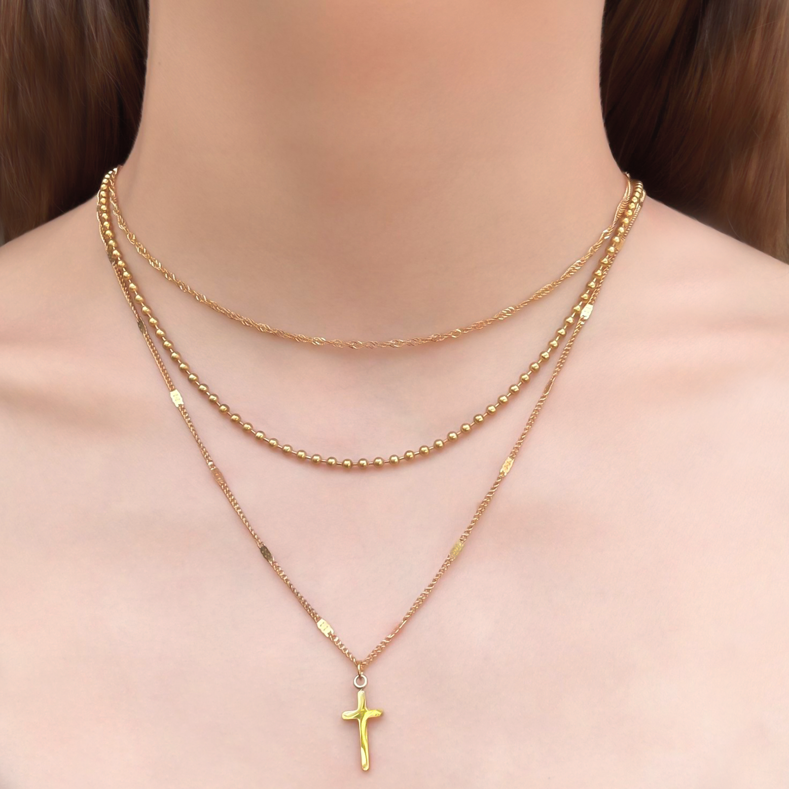 Collar Layer Dorado con Cruz Acero Inoxidable 3H2