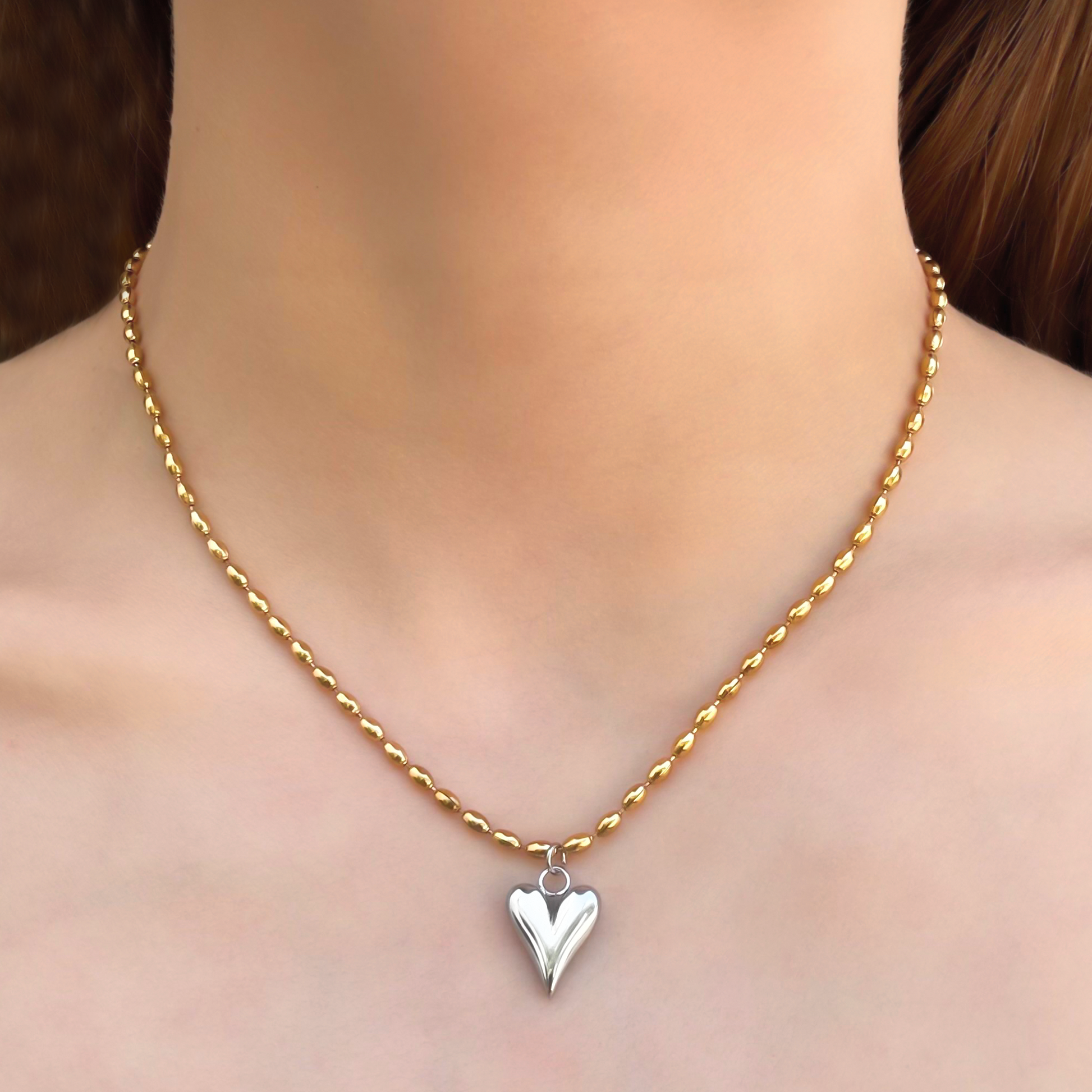 Collar Oro-Plata Corazón Acero Inoxidable 1i3