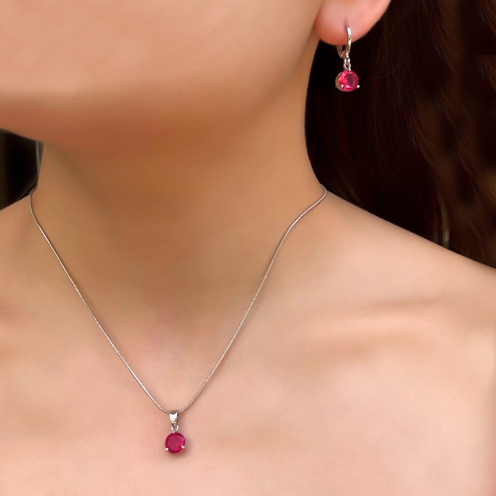 Collar y Aretes Cristal Rojo Chapa de Oro C690