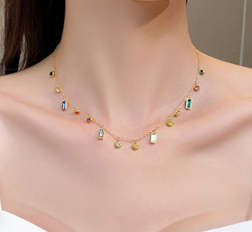Collar Dorado Cristales de Colores Chapa de Oro 1G3
