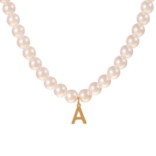 Collar Perlas Blancas y Letra A Dorada 1I5