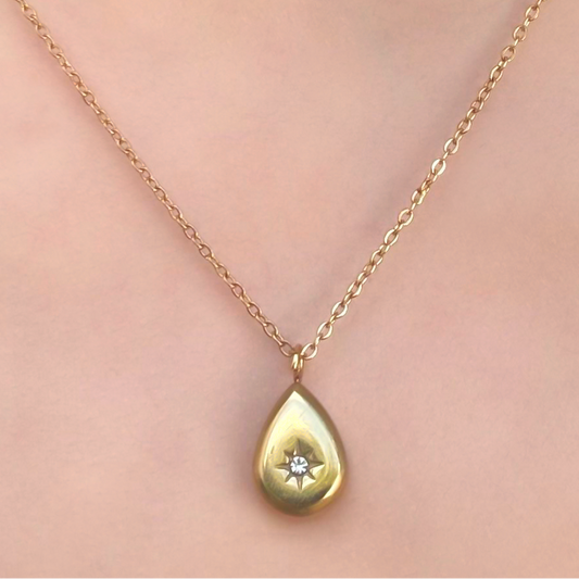 Collar Dorado Gota con Zirconia Acero Inoxidable 1w2