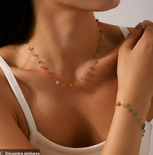 Collar Piedras Colores Acero Inoxidable 2Y1