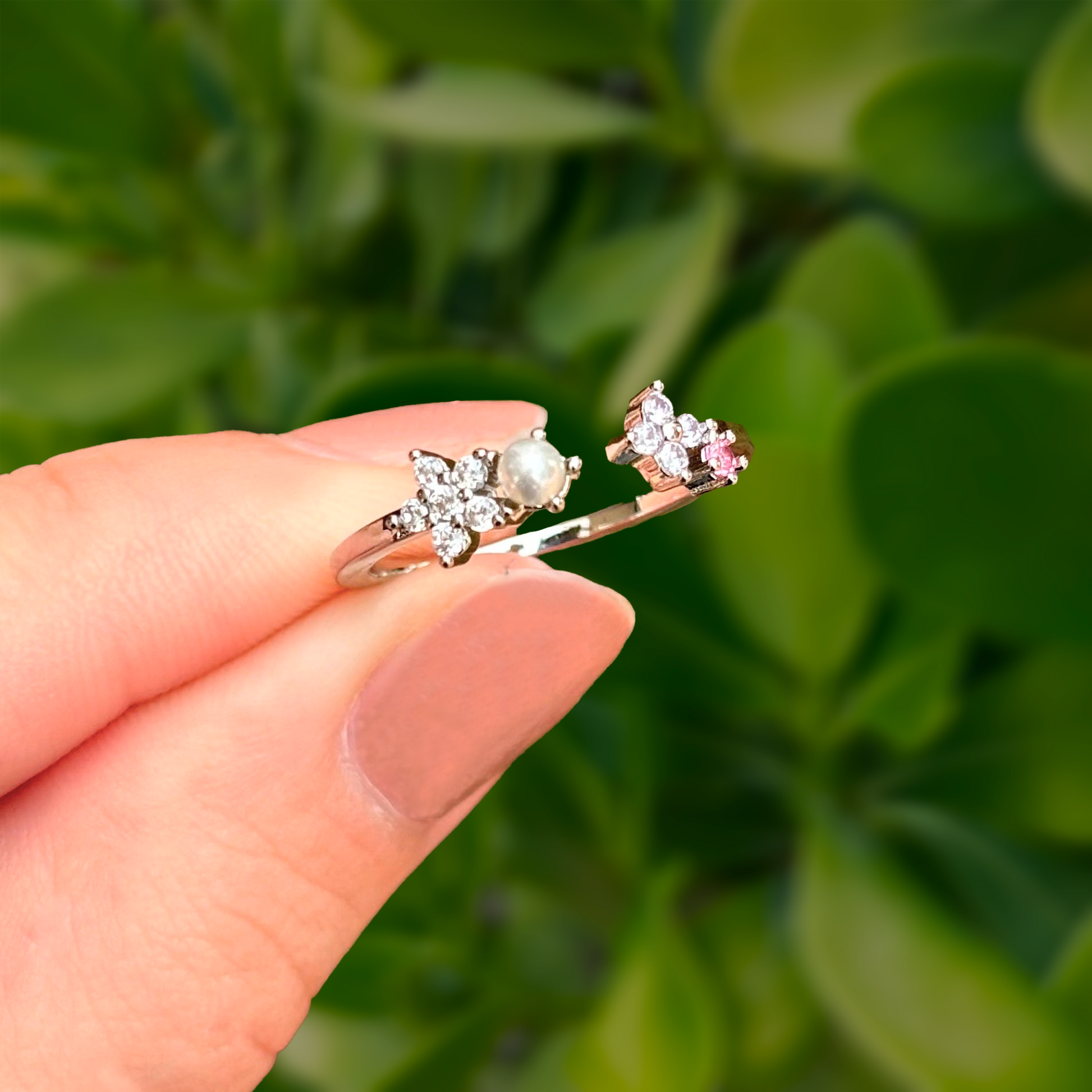 Anillo Plateado Perla y Zirconias Ajustable Chapa de Oro Az14