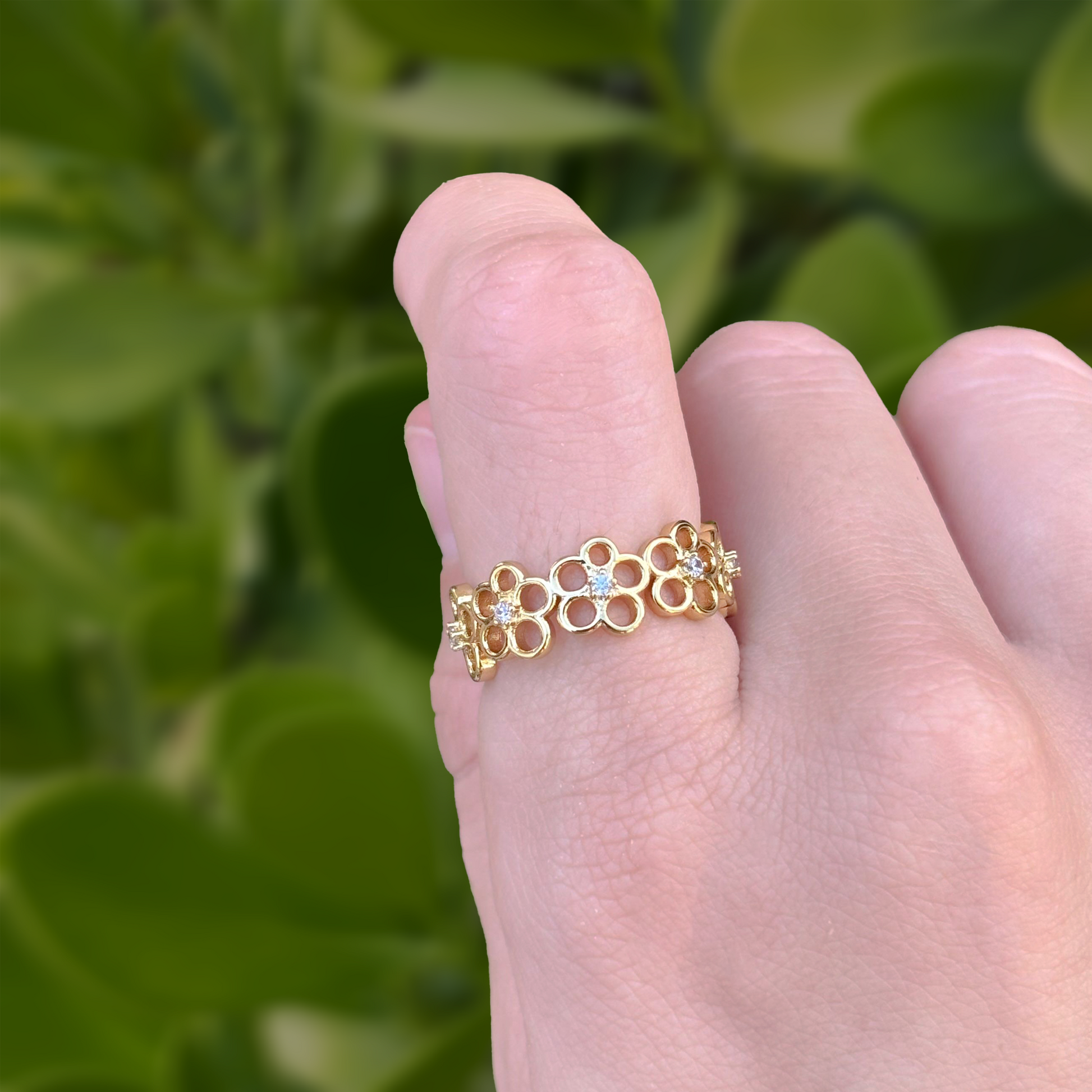 Anillo Flores Doradas Chapa de Oro Ajustable C619