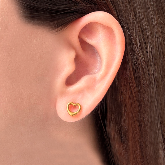 Aretes Dorados Corazón Doble Vista Acero Inoxidable Ve4